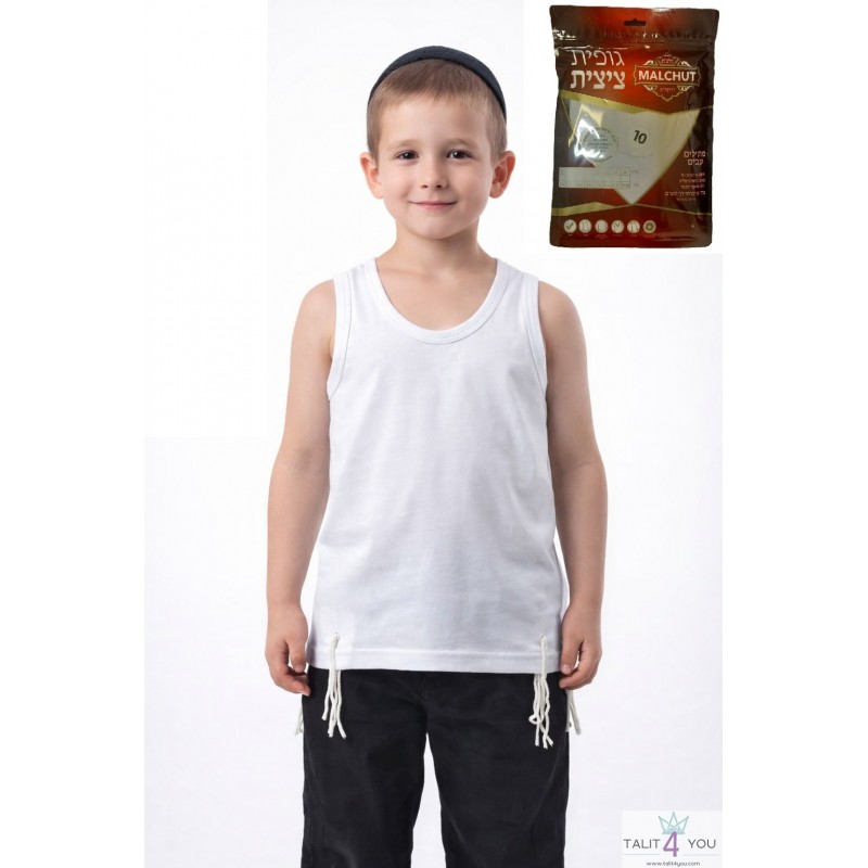 Undershirt tsitsit knit in white from the MALCHUT JERUSALEM brand.