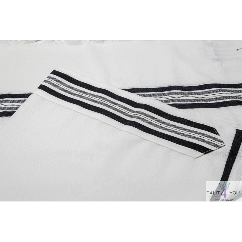 Tejido de las lineas de lana exclusiva, ayuda al talit a no deslisarze y Da una sensación muy liviana. El tallit es 100% lana