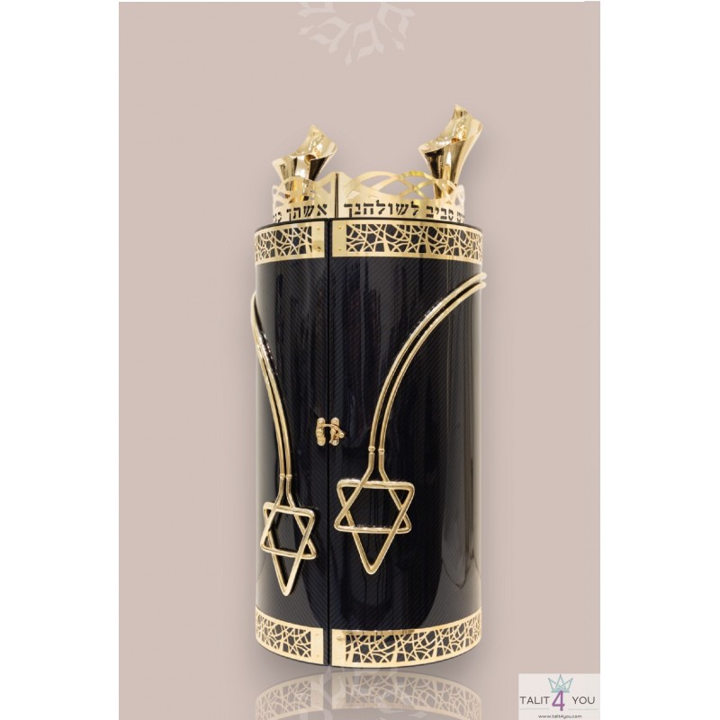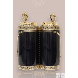 Combinaison de pierres précieuses luxueuses et d'un système de rouleau intégré pour protéger le parchemin et assurer le confort du lecteur de la Torah.